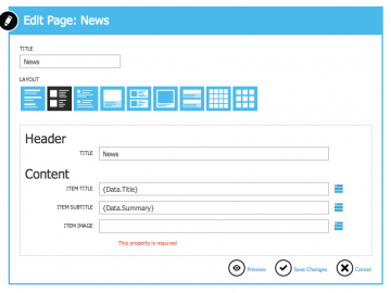Das Design der Seite lässt sich per Klick auf die neu entstandene News-Section auswählen. Das App Studio bietet neun Varianten, etwa einfache Listen oder Listen mit Bildern.