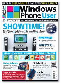 Die Ausgabe 02/2014 von Windows Phone User zeigt wie das Windows Phone im Zusammenspiel mit TV-Geräten und Medienservern eine Multimedia-Zentrale wird.